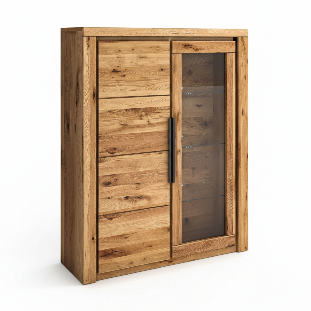 Part-Solid Oak Display Cabinet 103 × 147 cm Natural Finish