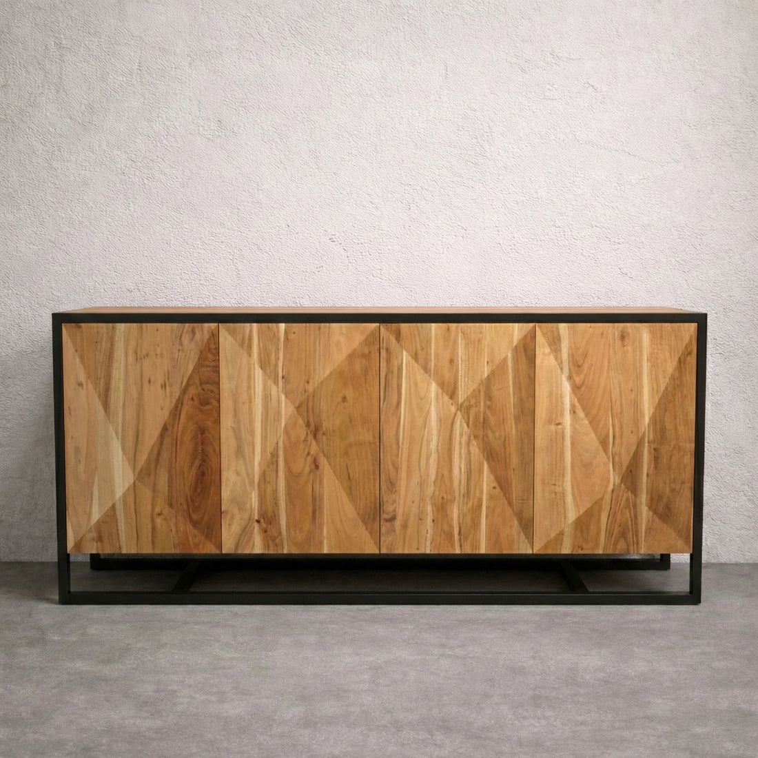 Sideboard Cabinet Wood and Iron 180 × 90 × 45 cm Natural Finish Jupiter Design