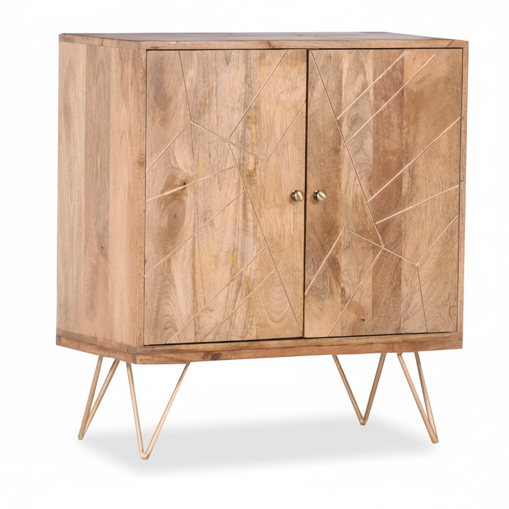 Sideboard Cabinet Solid Wood and Iron 90 × 100 × 45 cm Natural Finish Jupiter Design