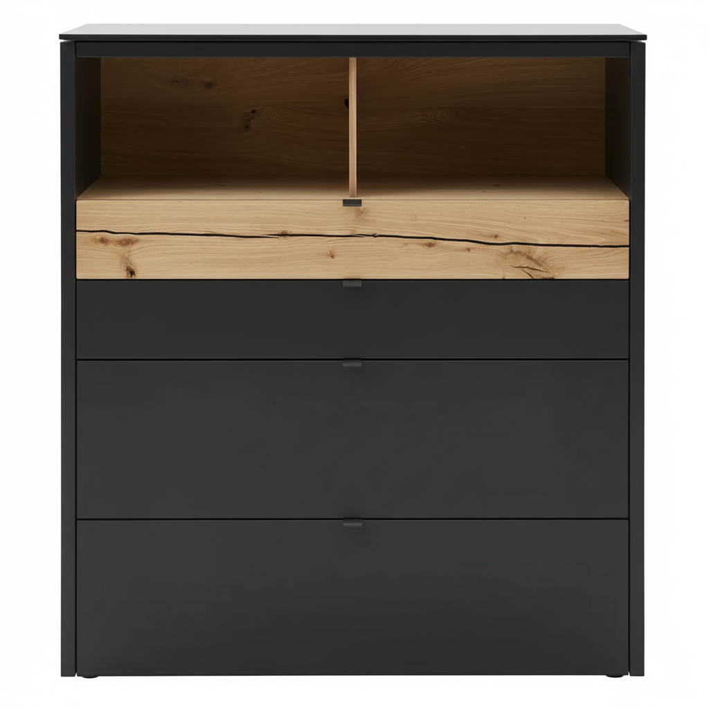 Lacquered Wood Highboard Sideboard 127 × 140 cm Anthracite with Oak Accent