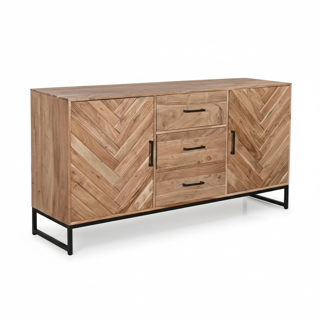 Solid Acacia Wood Sideboard 177 × 47 × 78 cm Black with Iron Frame