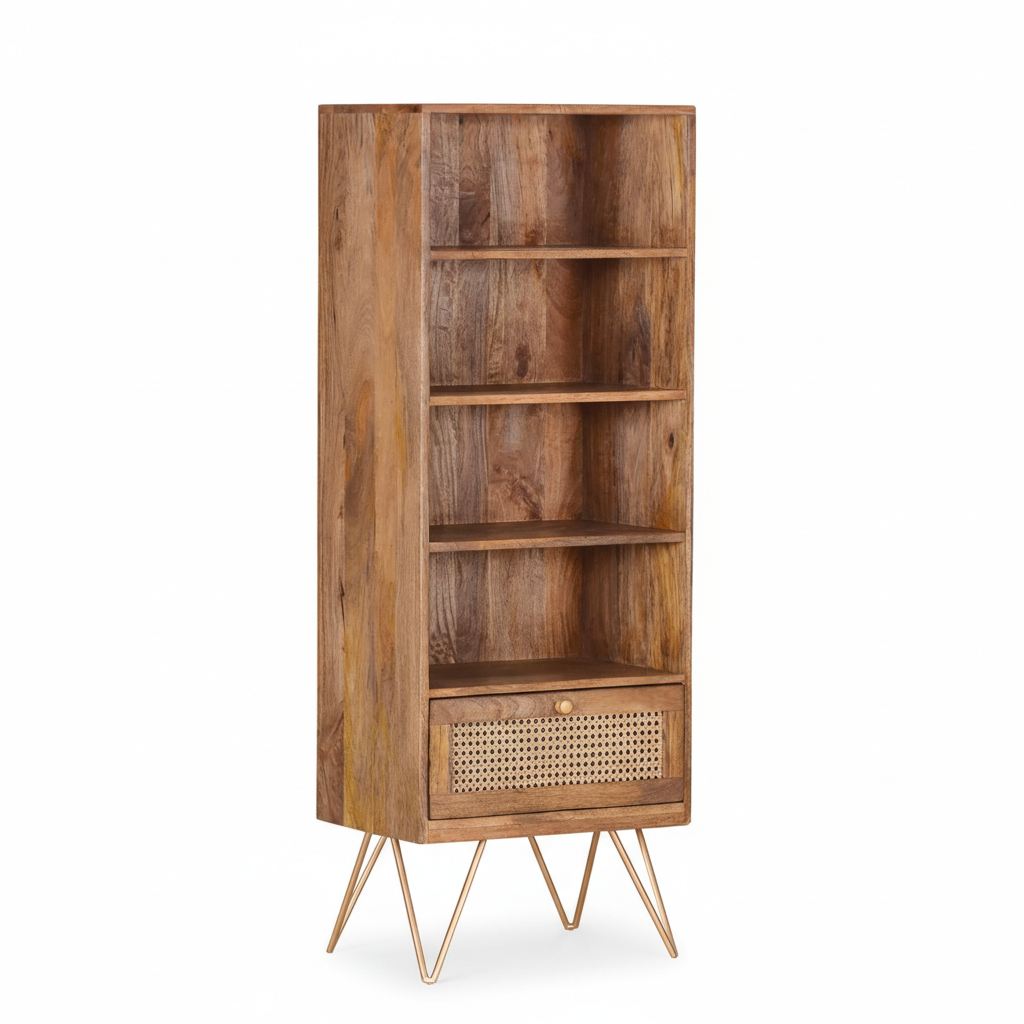 Solid Mango Wood Bookcase 60 × 182 cm Black Finish