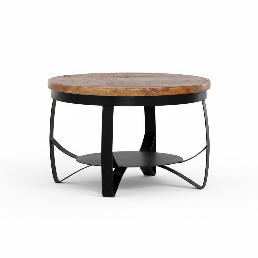 Round Wooden Coffee Table Ø80 cm Brown Black Finish