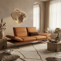 The sofa is upholstered in leather, providing a smooth and durable seating surface. The leather finish supports everyday household use and contributes to a refined and consistent appearance.