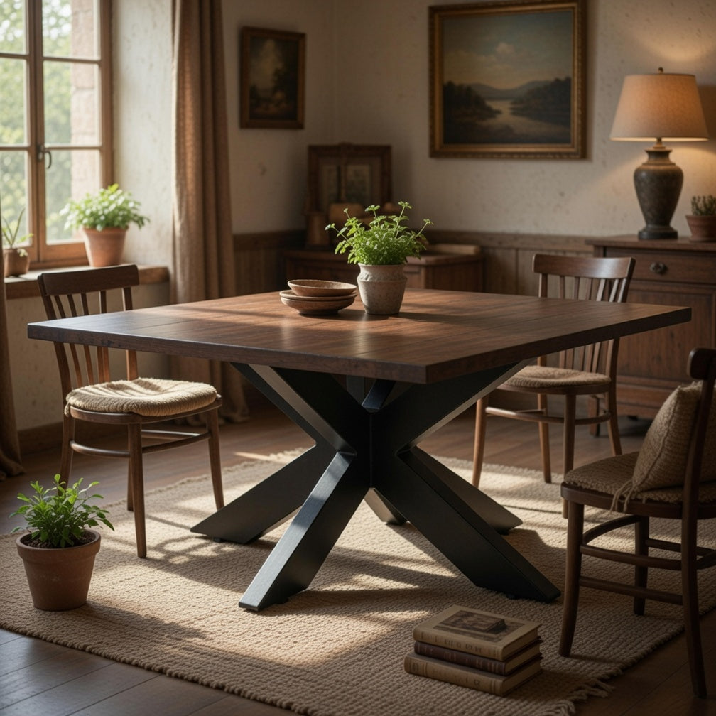 Dining Table Mango Wood and Metal 220 × 100 cm Espresso Finish Felix Design