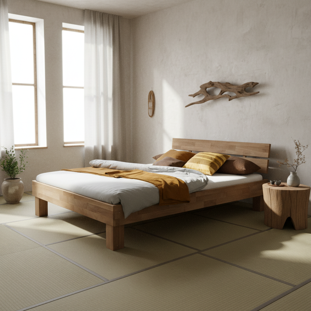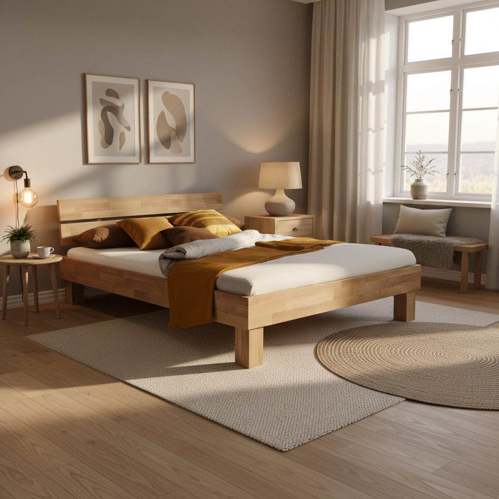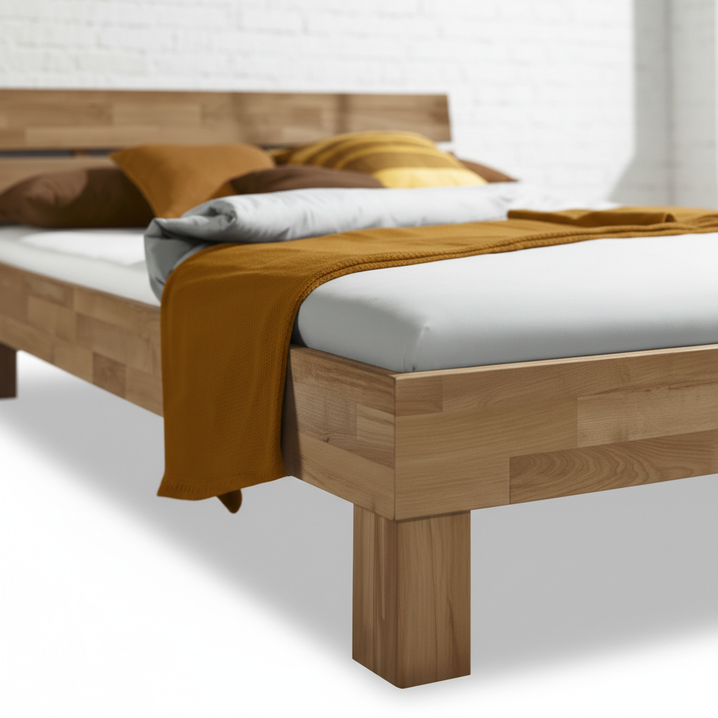 This bed frame is designed for indoor residential use and is constructed from solid wild oak wood. The 140 × 200 cm format is suitable for standard double mattresses and provides a stable sleeping base for bedrooms where natural solid wood furniture is preferred.