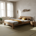 The bed frame is made from solid wild oak wood and finished with oil treatment. This construction supports durability and highlights the distinctive grain patterns and natural characteristics of wild oak.