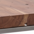 The surface features a cracked wood-effect finish designed to highlight the natural structure of the acacia wood. This treatment creates a textured appearance while preserving the integrity of the tabletop.