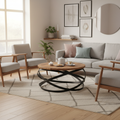 The circular tabletop provides a balanced surface suitable for placing drinks, books, or decorative items. The round shape supports flexible placement within seating arrangements and smaller room layouts.