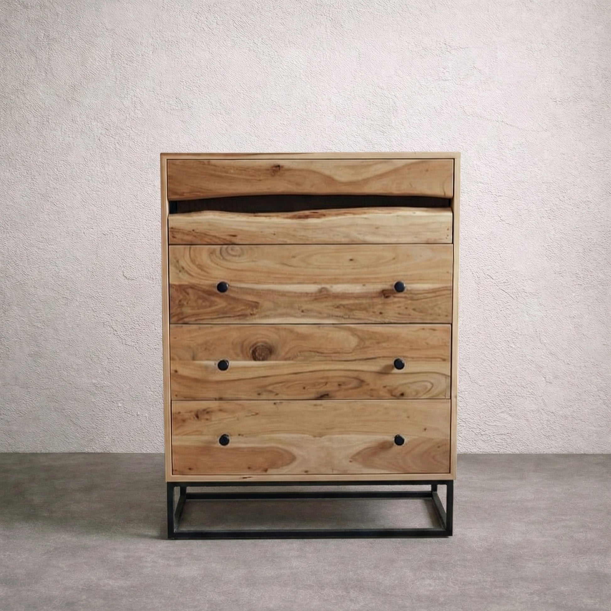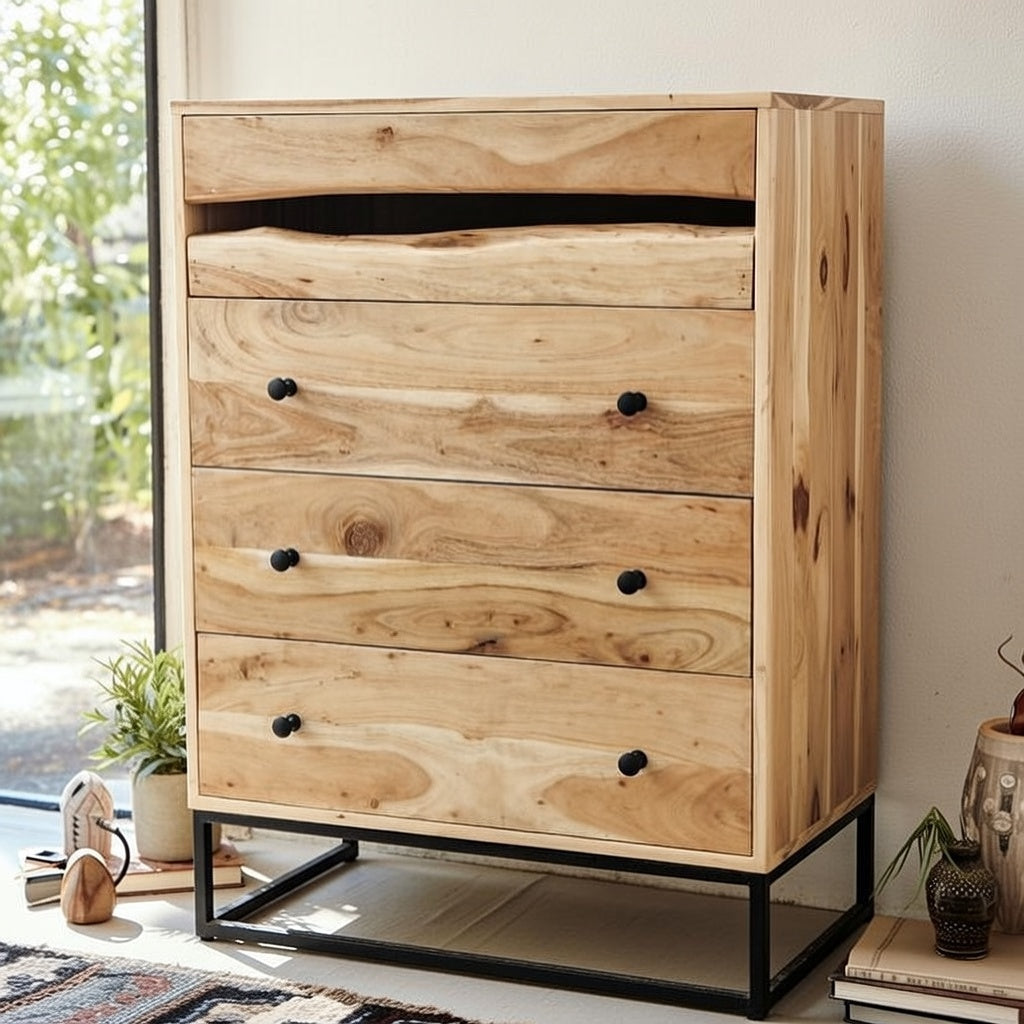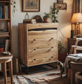 Chest of Drawers Solid Wood and Iron 70 × 105 × 40 cm Natural Finish Aron Design