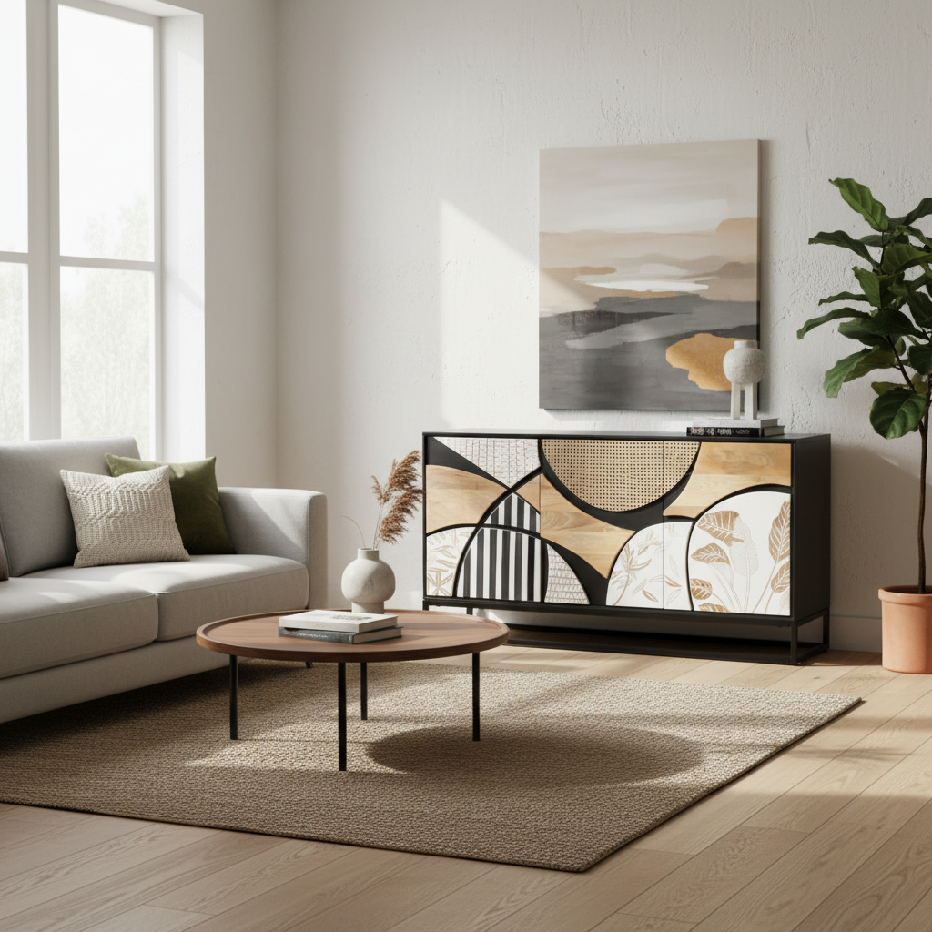 Decorative items and accessories shown in product images are not included. The product is supplied as a sideboard only.