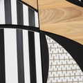 - Finish: Natural and black-stained mango wood with lacquered surfaces