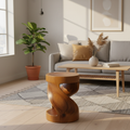 A natural wood finish highlights the individual grain patterns and colour variations of the suar wood. Each stool may display unique tonal differences due to the natural characteristics of the material.