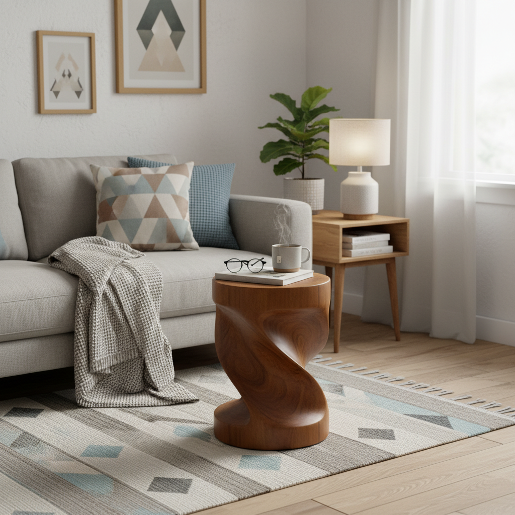 The circular seat offers a balanced surface suitable for seating or placing decorative objects. The rounded shape allows flexible placement within different interior layouts.