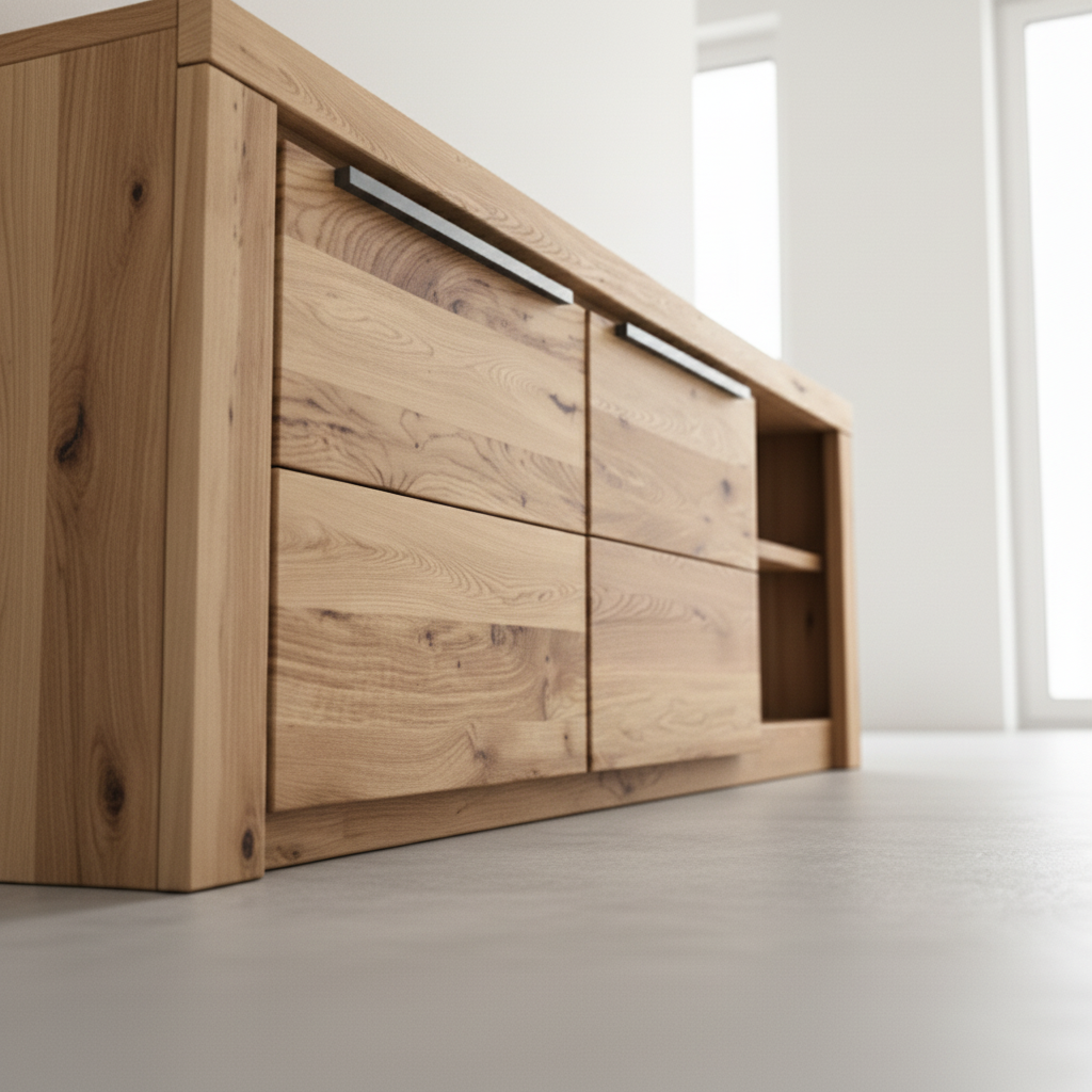 The unit is made from part-solid oak combined with wood-based materials. The natural oil treatment enhances the wood grain while offering surface protection for everyday indoor use. The finish is designed to preserve the natural character of the oak.