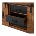 The cabinet body is made from solid mango wood, providing a stable structure for everyday household use. Natural wood grain characteristics remain visible beneath the surface finish, resulting in individual variations in appearance.