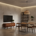 The TV unit provides space for televisions and media devices, with additional storage for accessories such as receivers, remote controls, or cables. Its sturdy construction supports stable placement of electronic equipment while maintaining a clean and natural appearance.