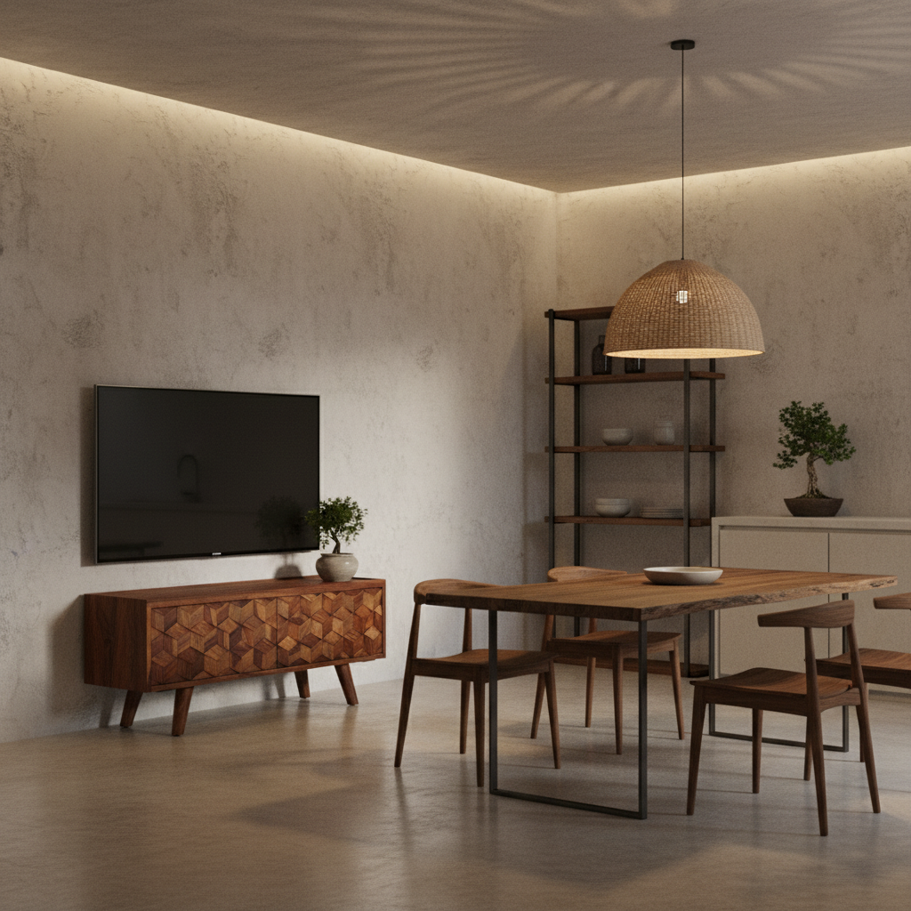 This TV unit is designed for indoor residential use and is crafted from solid sheesham wood with a natural finish. Its compact, low-profile format makes it suitable for smaller living rooms, media areas, or apartments where space-efficient media furniture is required.